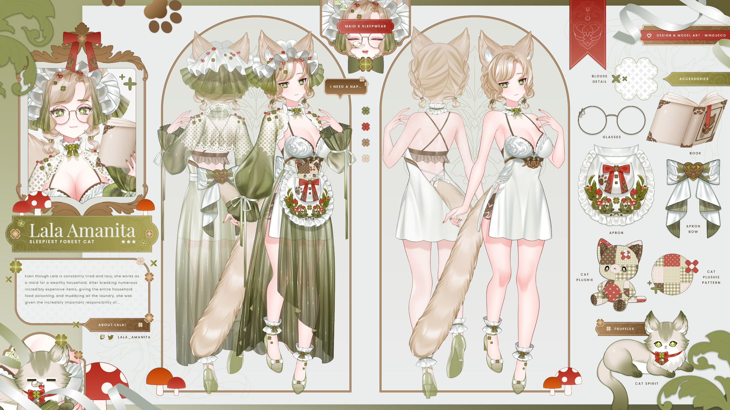 CLIENT: LALA (@LALA_AMANITA) | CHARACTER DESIGN, REFERENCE SHEET & MODEL ART: NII (@NINOUECO)