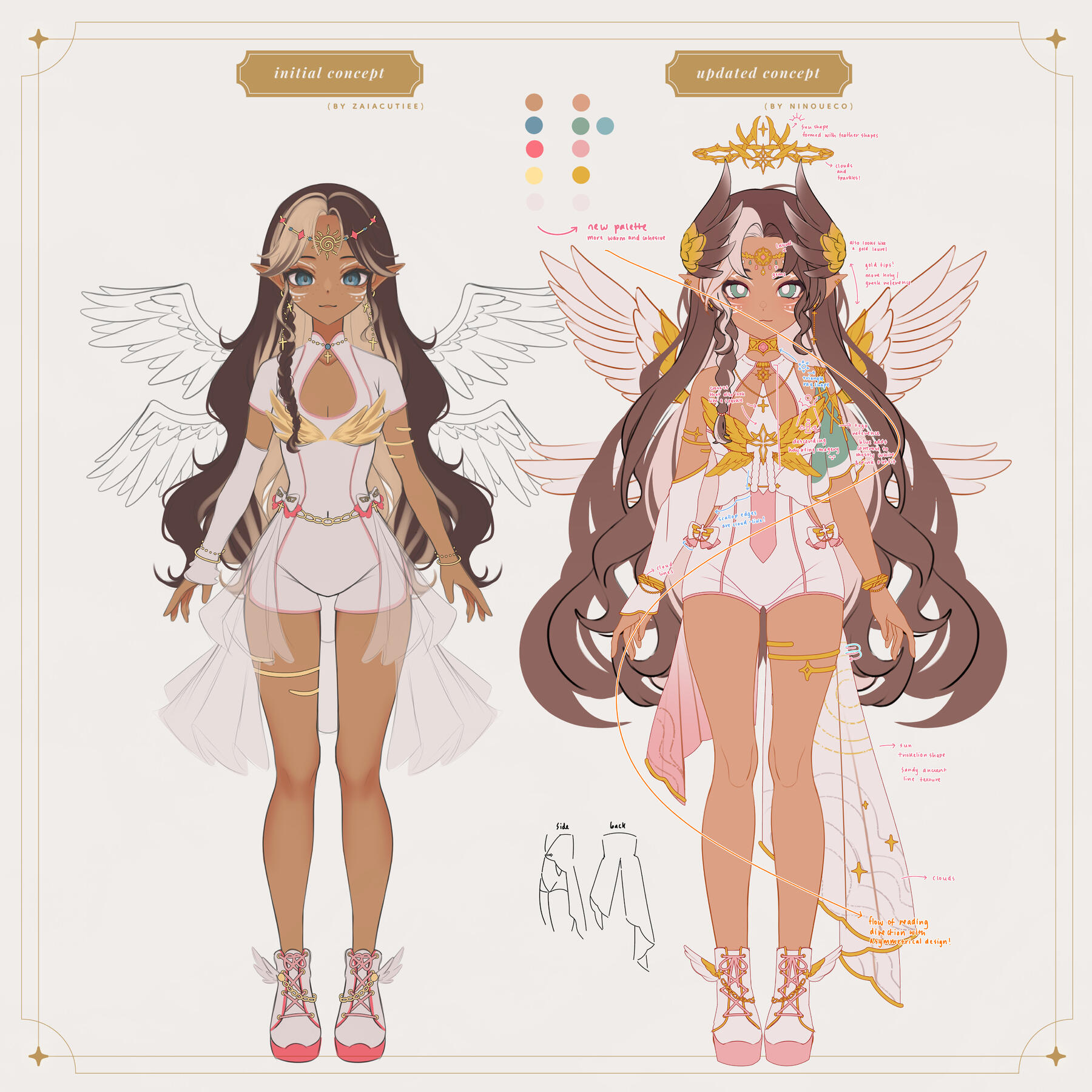Includes fullbody front and back view (Clean sketch with flat colours)